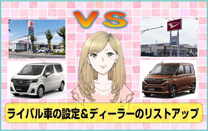 上記の競合車やスズキのディーラー、サブディーラーをリストアップして、商談します。